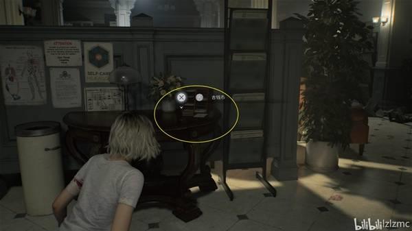从东门进入等候室,面前桌子上,找到古钱币16。等候室房间里两个大花瓶都有子弹,打碎花瓶拿了子弹后,马上蹲着离开,不然会被输液架战神打。