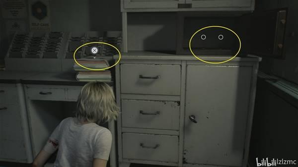 继续向西走,在等候室的西侧,如图位置,获得【文件16:更换保险箱的通知】,右边打开的保险箱里,找到古钱币17-18。保险箱对面的抽屉能找到废料。等候室中间,沙发旁边的小花瓶,打碎能找到废料。