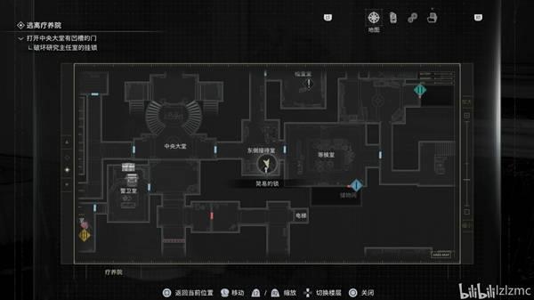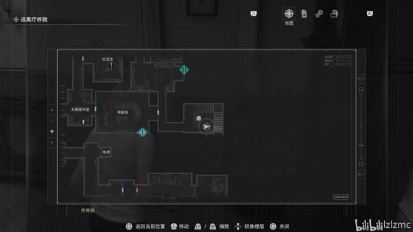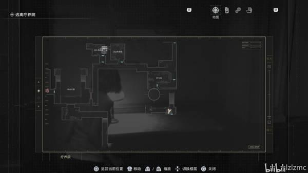 楼梯上2楼直走,调查面前的地图,东侧地图(病房区),地图更新。