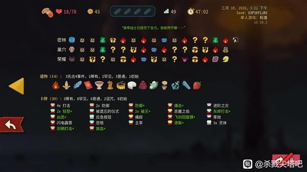 说起《杀戮尖塔2》的A10难度,那真是一个对卡组构筑的极大挑战。那战士在A10难度下该怎么过关呢?接下来,我来说一下由“dilidili50”分享的《杀戮尖塔2》战士A10通关心得,希望能给大家一些帮助。 在A10难度下,你要特别注意卡牌的选择。关键是要构筑一个平衡的卡组,确保攻击和防御都能兼顾。通常来说,优先选择能提高生存能力的卡牌,再搭配一些强力攻击卡,确保在面对BOSS时有足够的输出。另外,合理利用遗物和药水的效果,也是通关的重要策略。总之,合理的卡牌选择和策略运用,能让你在高难度下更顺利地通关。