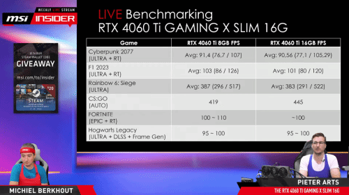 此外,两个版本也在《堡垒之夜》和《霍格沃茨之遗》中的性能不相上下。16GB版唯一领先的测试项目是《CSGO》。