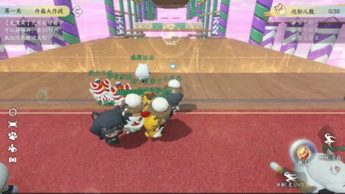 《逆水寒》手游的“圆萌乐向前冲”玩起来很简单,匹配成功后,30个玩家会自动变成圆萌乐同场竞技,每场会有3个随机关卡。关卡分为两大类,一种是竞速关,在60秒或90秒内跑到终点就是胜利,另一种是生存关,在60秒内没有掉进水里就算胜利。