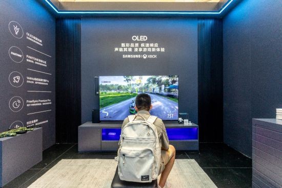 在专为电竞发烧友搭建的电竞房内,三星 OLED电视以臻品画质、流畅性能加码玩家流畅操作。画面呈现上,该电视采用三星OLED自发光面板配合量子点显色技术,通过像素级精准控光实现量子点HDR亮度增强,真实还原丰富的屏幕色彩。搭配神经元量子点处理器,还可实时解析并优化画面内容,从色彩纯度、亮度与对比度等方面重塑屏幕画质,真实还原游戏世界。值得一提的是,该电视是全球首款获得潘通(Pantone)色彩权威认证的OLED电视,这意味着其出色的画质和表现力足以满足玩家对游戏色彩的高需求。此外,该系列电视拥有动态加速引擎 Pro 技术,支持高达4K 144Hz的动作增强,还获得了AMD FreeSync Premium Pro技术认证,高刷新率、不拖影、不掉帧,助力玩家以丝滑操作勇获佳绩。