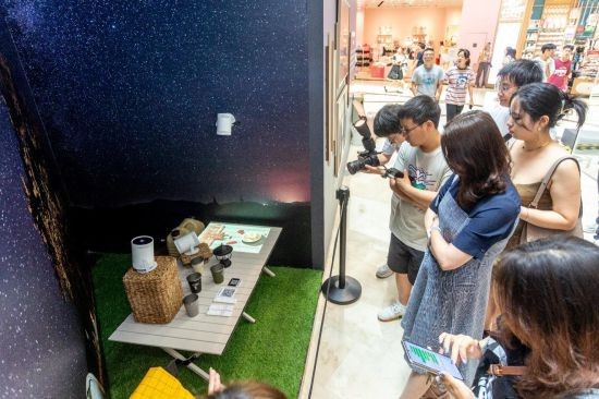 “三星随享空间”是一个集投影、听音和照明于一身的多功能空间,该空间的主角非The Freestyle随享智能投影仪莫属,其清晰沉浸的投影、环绕立体的音效以及精致小巧的外观也吸引了不少观众驻足。