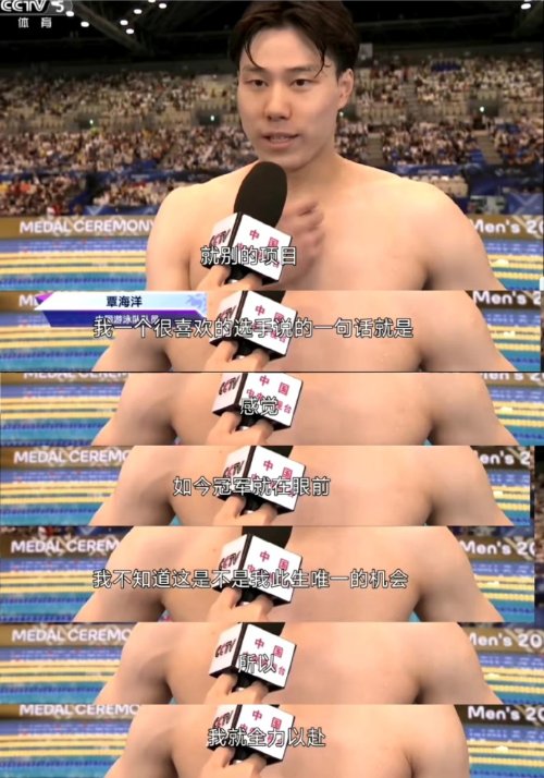 中国男子游泳选手覃海洋前天以打破男子200米蛙泳世界纪录的成绩夺得了冠军。在赛后覃海洋接受媒体记者的采访中,惊现《英雄联盟》职业选手Showmaker的经典语录。