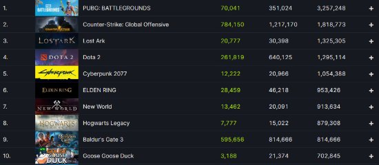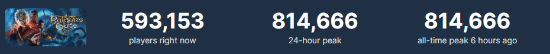 这个成绩也是Steam历史在线榜的第9名,排在它前面的是《霍格沃兹之遗》(87万人)。目前,《博德之门3》在线玩家数为593153人。