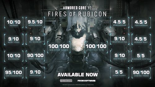 万代南梦宫发布《装甲核心6》媒体赞誉宣传片。截止发稿,本作在M站媒体均分为86,不少评论家将其誉为“当代机甲题材的一部大师之作”。