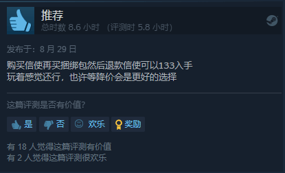 游戏在Steam平台目前有“首发优惠”,-10%的折扣,售价148.5元。