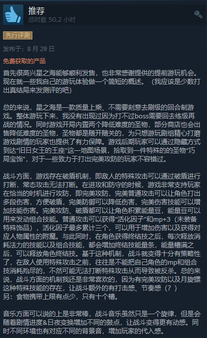 回合制角色扮演游戏《星之海》已于昨日正式推出,目前这款游戏在Steam的评价为“特别好评”,截止写稿时,共收录543篇评测,其中有92%是好评。