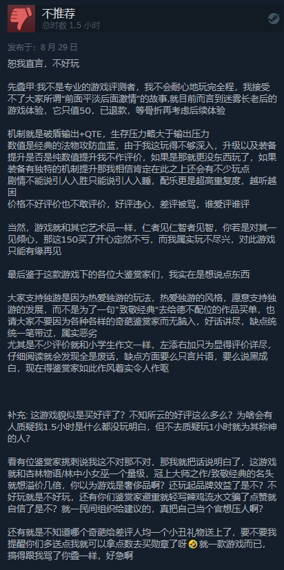 给出差评的玩家认为:不好玩。配乐重复度高,剧情引人入睡。