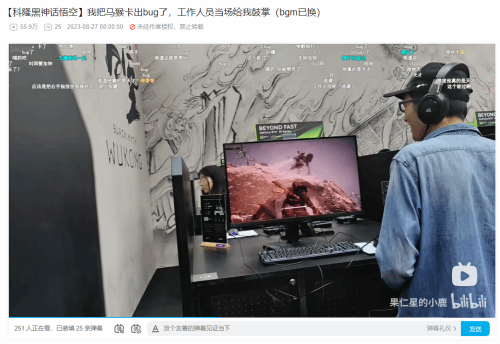 在之前的《黑神话:悟空》科隆试玩展上,一位中国玩家@果仁星的小鹿把赤尻马猴卡出了bug,一旁的工作人员当场鼓掌。