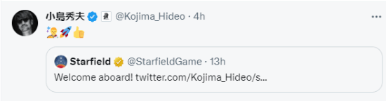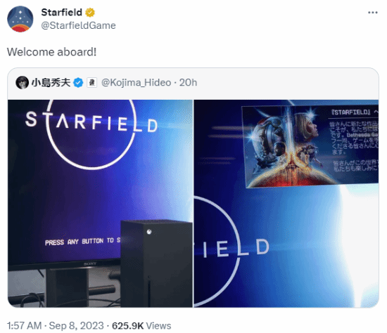 昨日,游戏制作人小岛秀夫发推表示已开始玩《星空》,并晒出用XSX游玩的照片,用的还是索尼电视。今日,《星空》官方为其点赞,并回复道:欢迎加入(登船)!