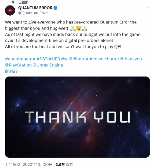 第一人称恐怖射击游戏《量子误差》官方今日发文,向所有预购玩家致谢。