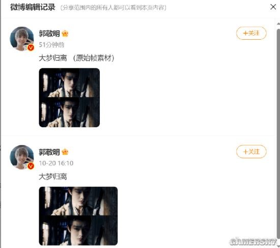 近日,郭敬明在个人社交平台上分享了一组侯明昊的《大梦归离》剧照原始帧。这一举动在评论区引发了热议。