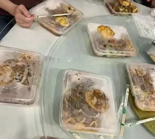 这场原本应该是一场美食盛宴,却因为这份意外的“礼物”变得让人哭笑不得。据了解,这些盒饭里面主要是素菜,配一块煎蛋,价格仅为10-15元,与酒店的宴席规格极不相符。
