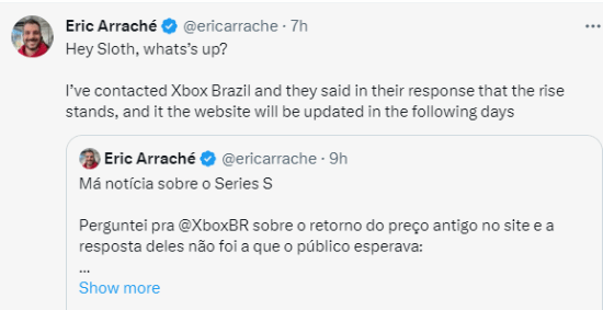 但这次降价有可能只是暂时的,有博主表示自己联系了Xbox巴西官方,他们在回复中表示涨价是持续的。网站会在未来几天更新信息。