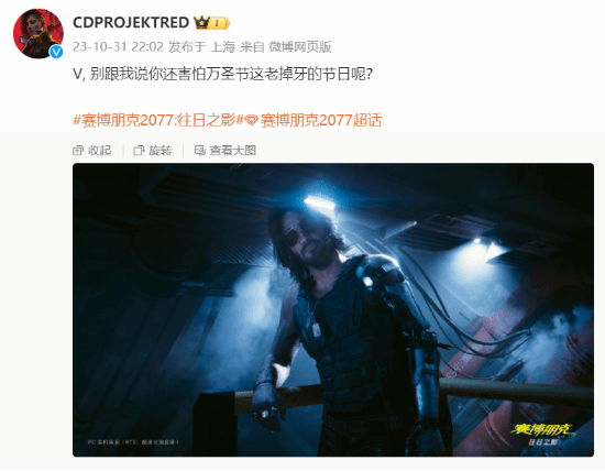 CDPR官博发万圣节贺图:V, 别跟我说你还害怕万圣节这老掉牙的节日呢?