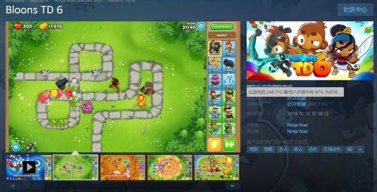 这款包含内购的游戏在Steam同样获得了佳绩:在24万余条评价中获得超过97%好评率,高于“塔防三幻神”中的另两款游戏。