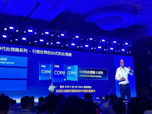 根据@wxnod发布的一张会议现场图来看,英特尔预热了14代酷睿处理器的新品,表示更多 65W S 和 HX SKUs 即将推出,包括在成都封装测试的中国定制版本。