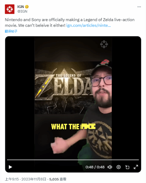 知名游戏媒体IGN也对索尼和任天堂即将展开合作拍摄《塞尔达传说》真人电影的消息感到震惊,并在社交媒体上表示:“我们不敢相信!简直不可思议。”