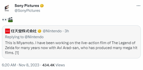 今日,索尼影业官方转发任天堂《塞尔达传说》真人电影推文,这部电影将由任天堂和索尼联合出资。索尼和任天堂这两家“友商”之间的合作也让网友们震惊又兴奋。