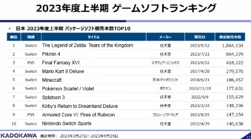 据博主Genki_JPN消息,日媒Famitsu总结了2023-2024上半财年(3月27日-9月24日)实体版游戏在日本的销售情况。