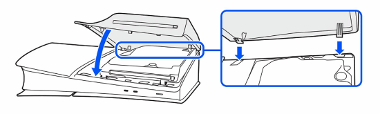 安装光驱附带的盖子以及水平支架,将盖子与主机上对应的孔位对齐,按压直至听到咔哒声。在开机的设置过程中,需要联网验证,才能将光驱和主机配对。