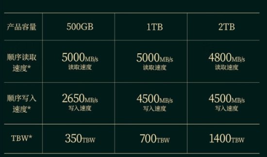使用M.2接口,广泛适用于台式机、一体机、笔记本电脑等。NVMe协议,硬盘读写速度可达4800MB/s、4500MB/s,1400TBW寿命,提供5年质保。