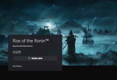 由Team Ninja开发的开放世界动作RPG游戏《浪人崛起》PlayStation商店页面现已上线,现在可以加入心愿单,不过目前该页面除了“推出日期待定”和官方游戏简介外,没有其他信息。