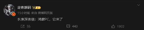 据发现,鸿蒙手机端适配业务不断推进的同时,PC领域也有望成为鸿蒙的下一重大目标。近日,国内科技博主@定焦数码发文透露,鸿蒙PC应该要来了,且预计会在明年发布。