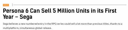 在最近与投资者的问答环节中,世嘉表示,借助多平台和全球同步发售,公司相信《女神异闻录》系列的主线新作在第一年可以售出500万份。公司的这些信息或许在表明《P6》不会成为一款独占游戏。