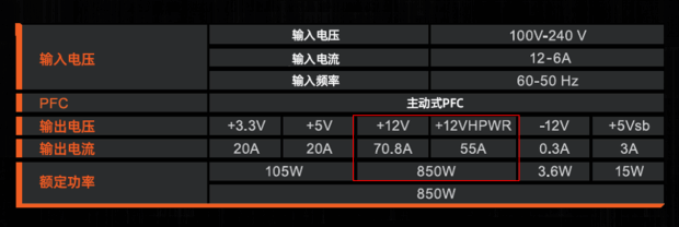 作为严格遵循INTEL ATX 3.0规范的电源,雪鹰850GP5W不仅实打实地支持高达70.8A的12V输出(单路12VHPWR最大660W,即PCI-E 5.0显卡输出),而且针对高端显卡存在的瞬时功耗大的情况有特别优化,可承受高达2倍的总功率偏移,超载200% 的功率超载瞬间输出也能保持稳定,强悍实力不言自明。