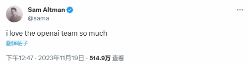 在今天早些时候,萨姆·奥特曼本人也在社交媒体发文称:“我非常喜欢OpenAI团队”
