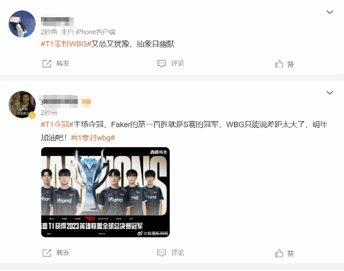 在今日的《英雄联盟》2023全球总决赛上,T1战队3:0零封WBG战队,随后相关词条登上微博热搜。