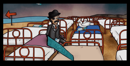 该作贯彻了迷失岛系列一贯的特色画风,采用老式人物访谈问答的形式,向主角和玩家们提出了一连串问题。而伴随着古典悠扬的音乐,这些问题或将引起游戏与现实的思考。