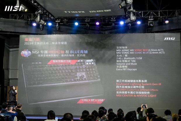 接下来的活动环节中,微星的产品经理们相继登台分享了主板及机电散、主机及显示器、显卡、外设以及笔记本等系列产品的介绍。在刚刚过去的10月,Intel带来了新品14代酷睿处理器,伴随着新世代处理器的上市,微星新品系列主板,14代品牌主机等纷纷与近期和大家见面。现场也对这些产品着重进行了介绍分享。产品经理们深入浅出地解释了产品的特点和创新之处,让现场观众对微星的技术实力有了更深入的了解。