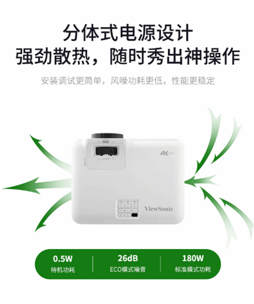 在标准模式下,LX700-4K功耗仅180W,在保障亮度的情况下,可以说是功耗小了,而功耗小的投影,在散热方面也表现更佳。