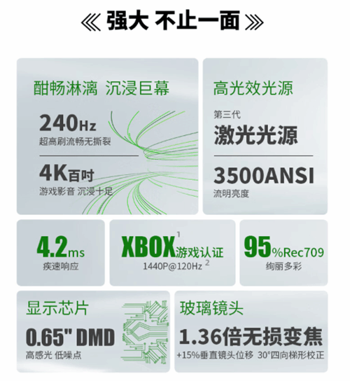 另外,由于LX700-4K是XBOX认证的投影,在游戏方面也有着更多便利性,比如与XBOX兼容CEC,并且支持1440P下的120Hz,能带来更沉浸的游戏体验。