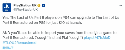 需要注意,PS4版原版游戏升级至《最后生还者2》PS5复刻版需要付费10美元,至于港版游戏的升级价格尚未公布。