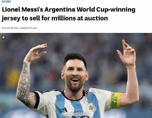 据美国媒体报道,苏富比宣布拍卖传奇球王梅西在卡塔尔世界杯关键赛事中身穿的阿根廷队球衣,估价逾1000万美元。