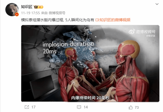 近日,科普博主“知识匠”发布了此次事故中潜艇内爆的模拟动画,物理效果十分逼真,看完之后,不由得让人脊背发凉,更加敬畏大自然。