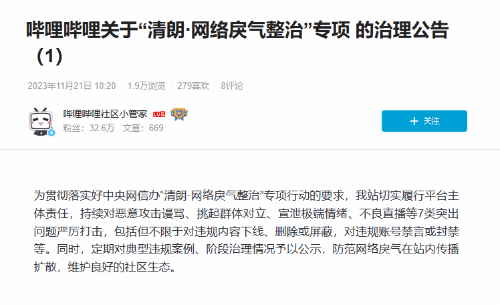 上周五,中央网信办按照 2023 年“清朗”系列专项行动总体安排,宣布在全国范围内启动为期 1个月的“清朗?网络戾气整治”专项行动。