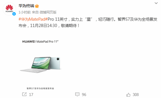 今早华为正式宣布了一款新品——华为MatePad Pro 11英寸。官方在预热中表示:“实力上‘星’,轻巧随行。”