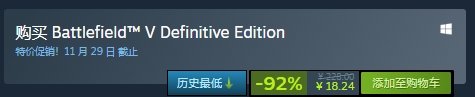 Steam秋季大促已经开始,《战地5》也迎来新史低价——仅需18.24元即可入手,并且还是包含更多内容的“决定版”,内含自游戏发行以来、第1年和第2年的所有游戏内容(武器、载具和装备),精英皮肤,皮肤等等。