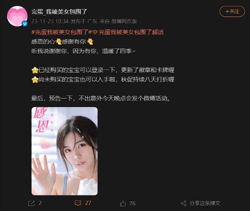 《完蛋!我被美女包围了!》官博宣布,游戏内现已更新了新的徽章和卡牌,感性的玩家们可以登陆游戏查看。此外,正值Steam秋促,游戏本体也有着-10%OFF的优惠,原价42元,目前售37.8元。