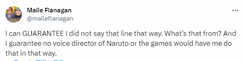 更糟糕的是,似乎连《火影忍者:终极风暴羁绊》配音演员本尊都对最终产品不满意,英语配音演员Maile Flanagan在回应他与佐助对战的片段时说:“我可以保证,那句话不是我说的。这种声音是怎么发出来的?我保证游戏的配音导演不会让我以那种方式配音。”