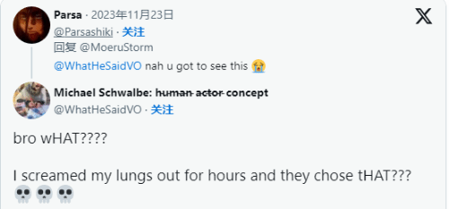 另一位配音演员Michael Schwalbe也直言最终游戏呈现的台词效果十分糟糕,并吐槽到:“我费力录制了几个小时,竟然选择了这几个片段。”