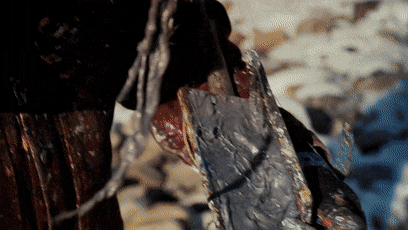 但如果把视角调远一些,就能发现画中正是眼前的水流与乱石。虽然很抽象,但又似乎成品很自然,确实有点东西。