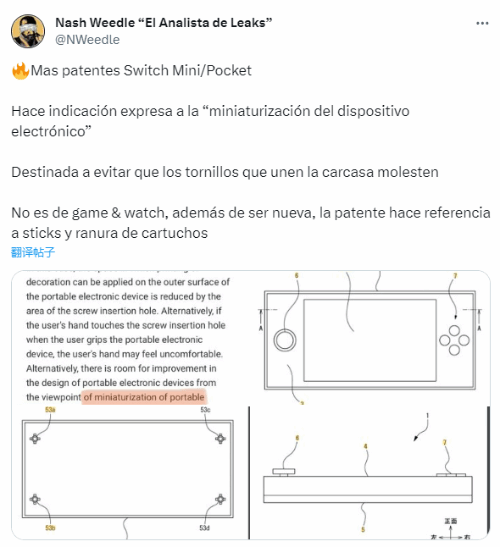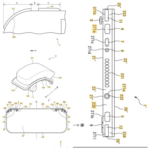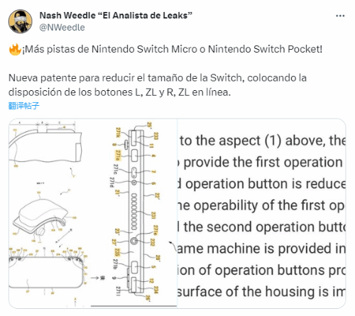 从他分享的专利原文和设计图来看,该设备似乎改动了摇杆,卡带插槽以及设备四周的螺丝,并且改变了按键布局,将截图和返回主页的按钮放在了主机下方,同时缩小了整体的尺寸,让四个肩键依旧保持以前的布局。