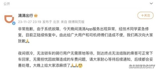 对此滴滴紧急回应称“由于系统故障,今天晚间滴滴App服务出现异常,经技术同学紧急修复,目前正陆续恢复中。”